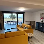 A vendégek saját maguk főzhetnek a felszerelt konyhasarokban vagy étkezhetnek a kültéri étkezőhelyen.